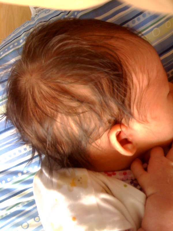 My hair is matted from multiple episodes of spit-up. Mommy says it makes me look like a punk rocker. I don't think they smell like spit-up though, unless they've been partying a little too much. I sure need a bath soon.